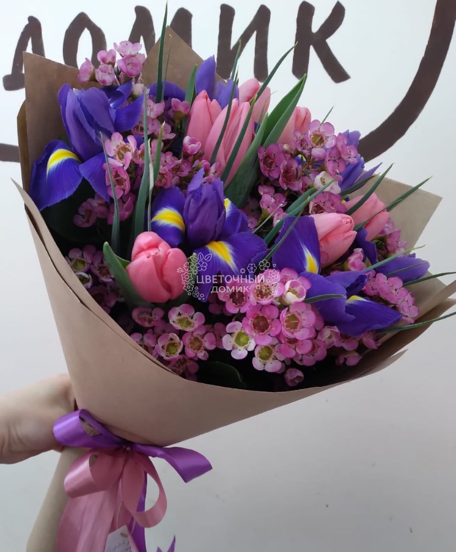 Букет с тюльпанами и ирисами «Парижанка»