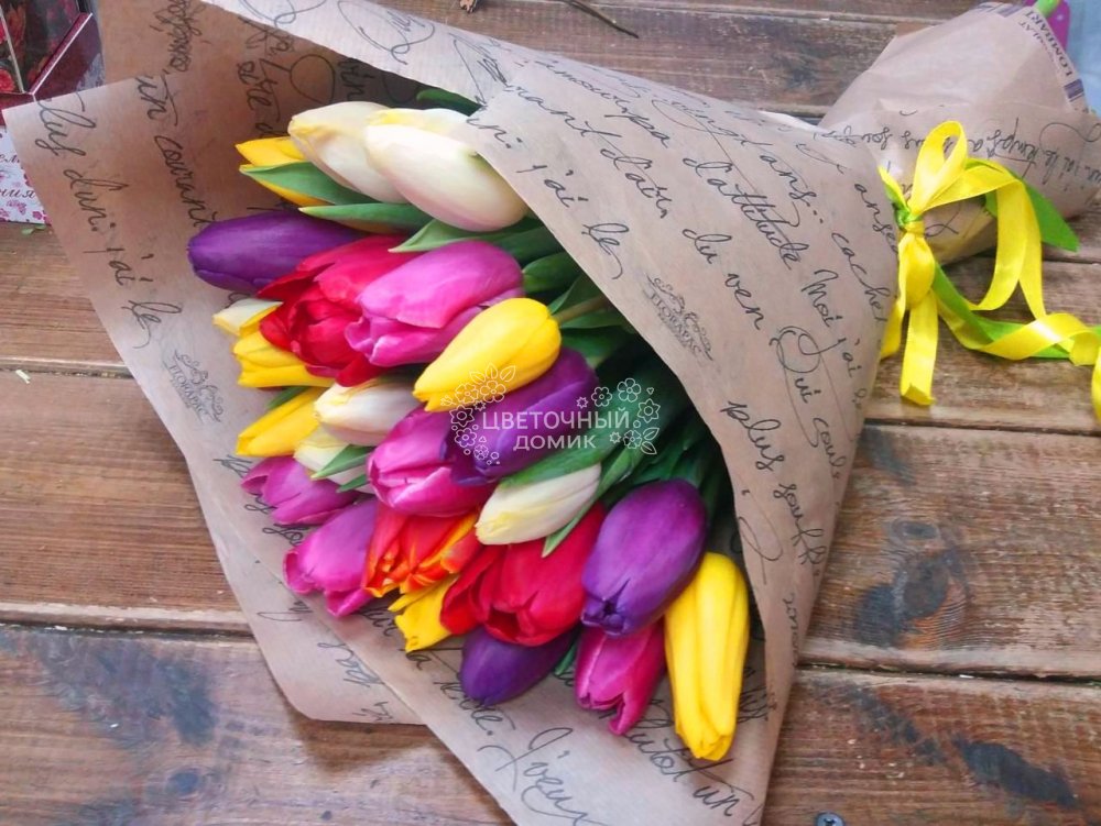Букет с тюльпанами «25 тюльпанов микс»