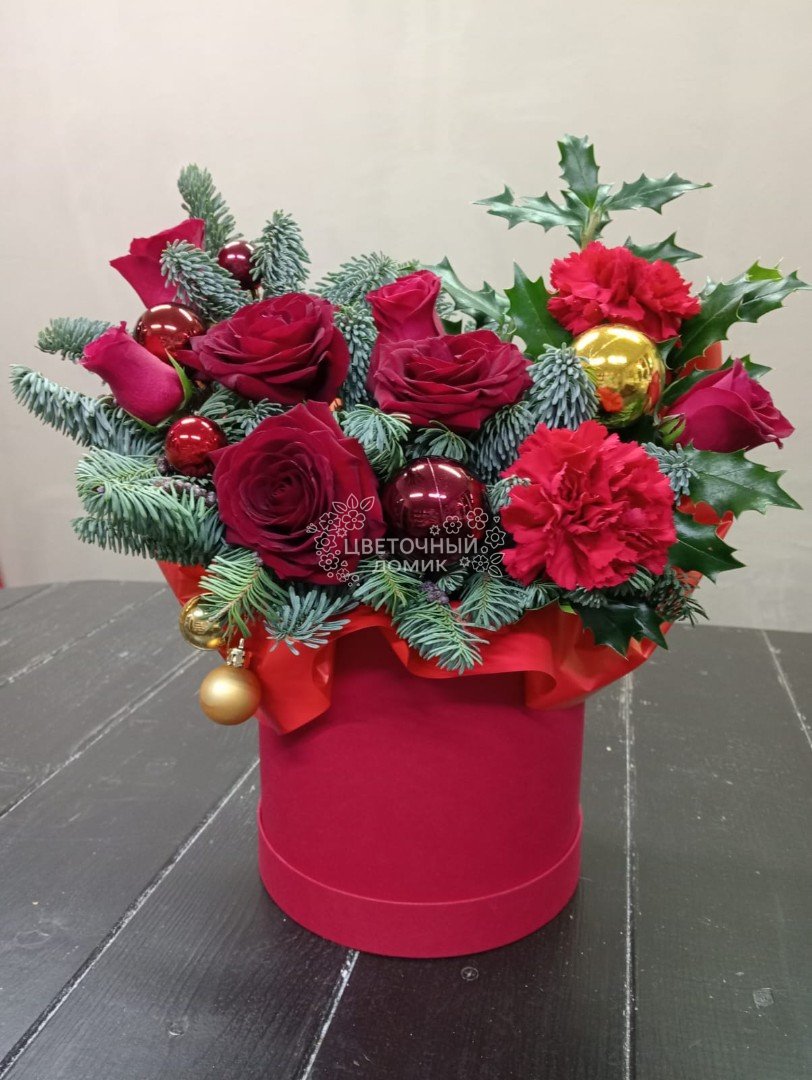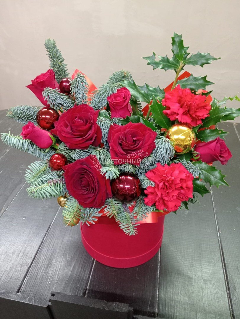 Новогодняя композиция в красном цвете