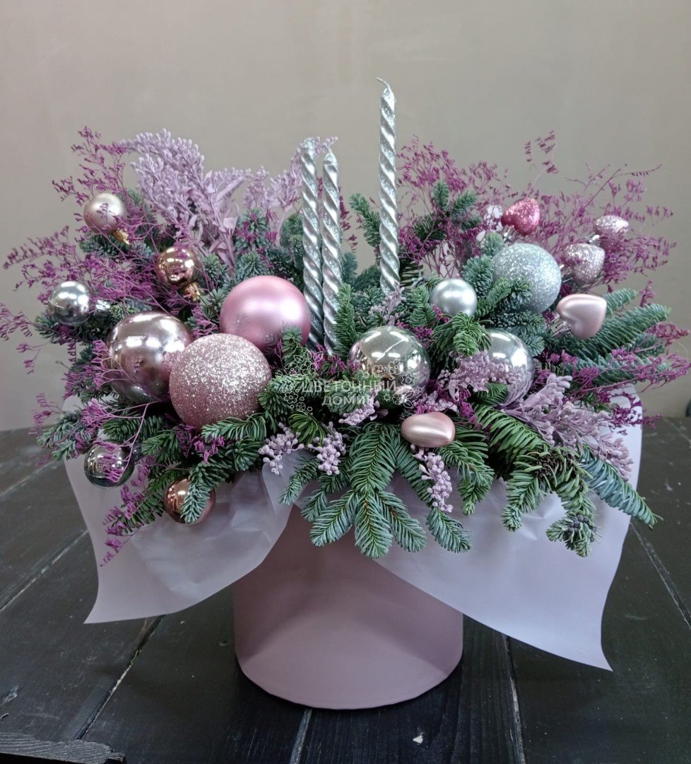 Новогодняя композиция в розовых тонах