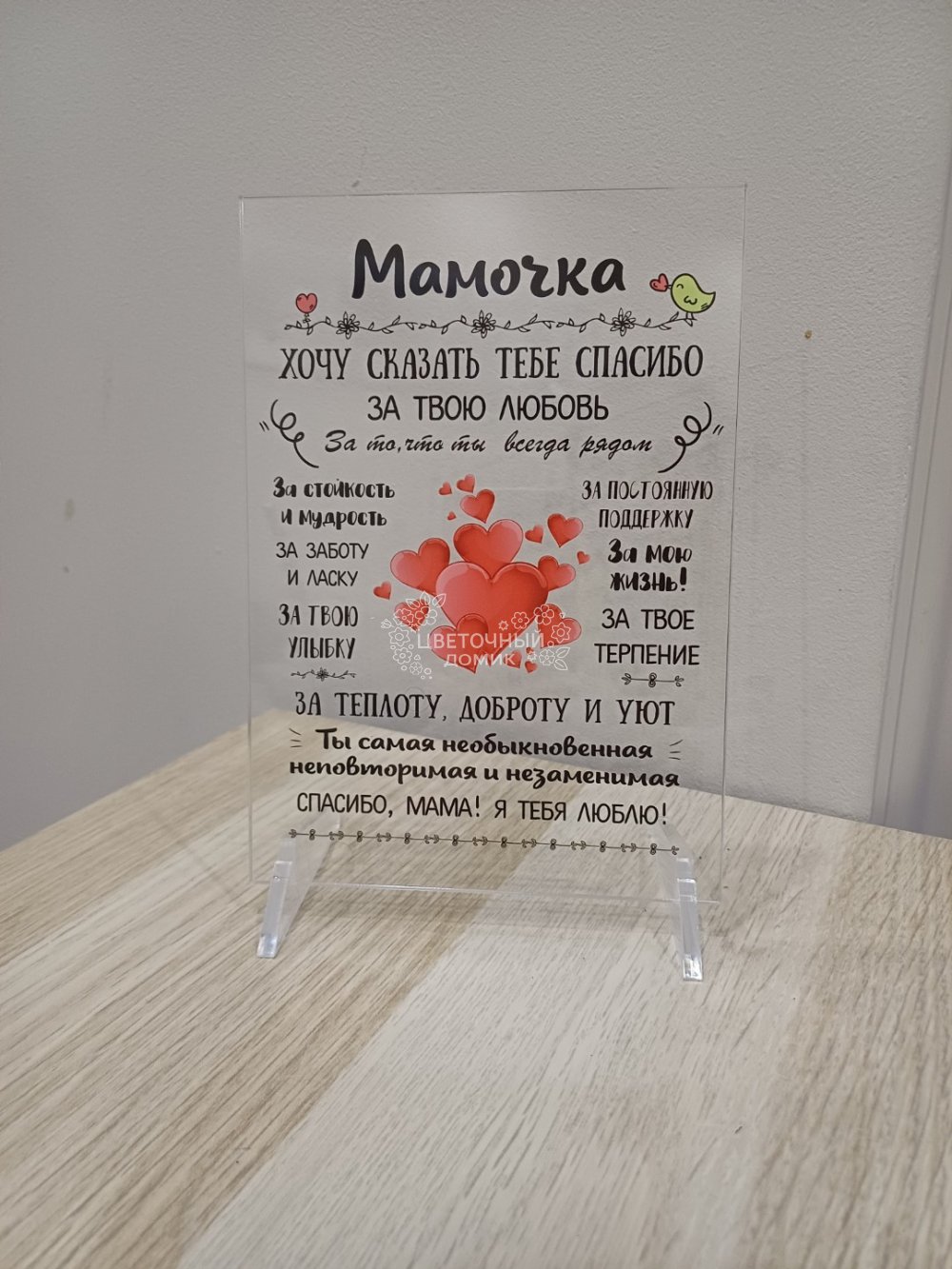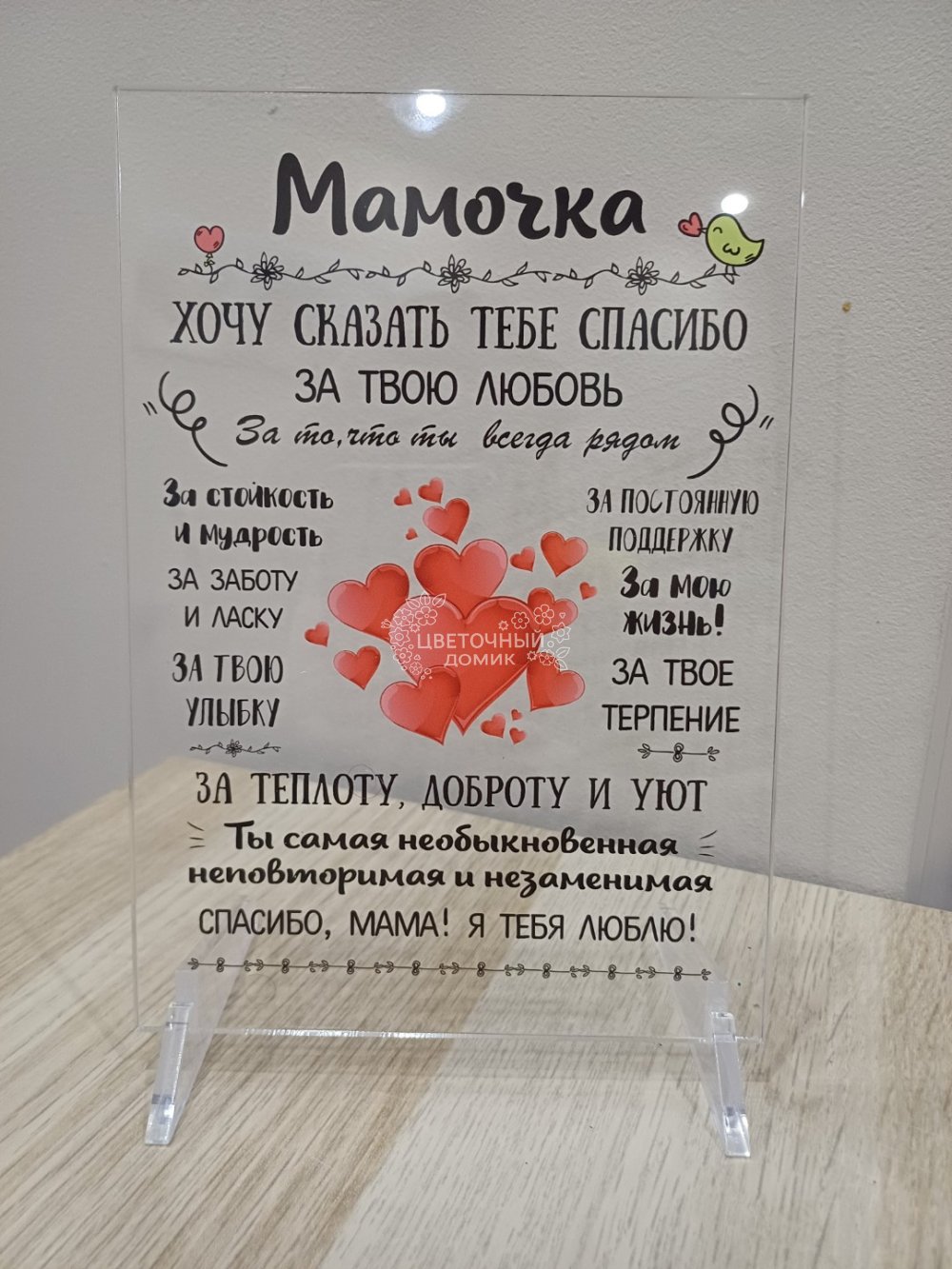 Постер из оргстекла на подставке в виде открытки с самыми важными словами для Мамы - как символ любви и благодарности Маме
