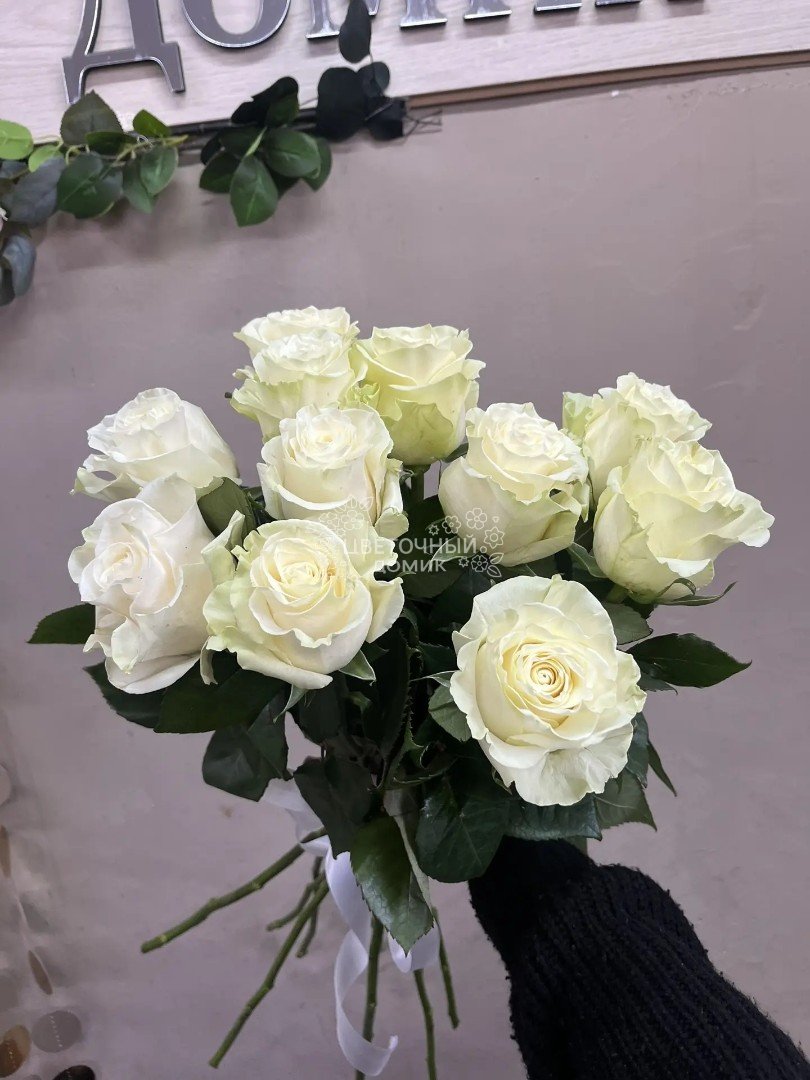 Букет из белых роз (60см) сорт Мондиаль (Эквадор)